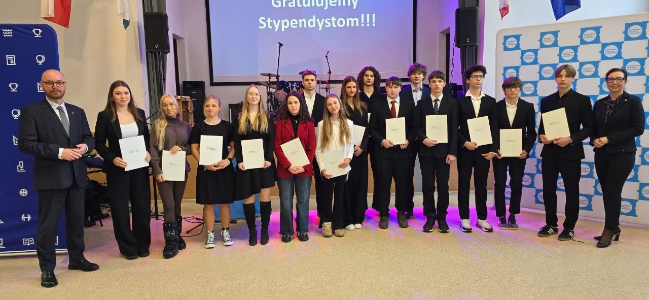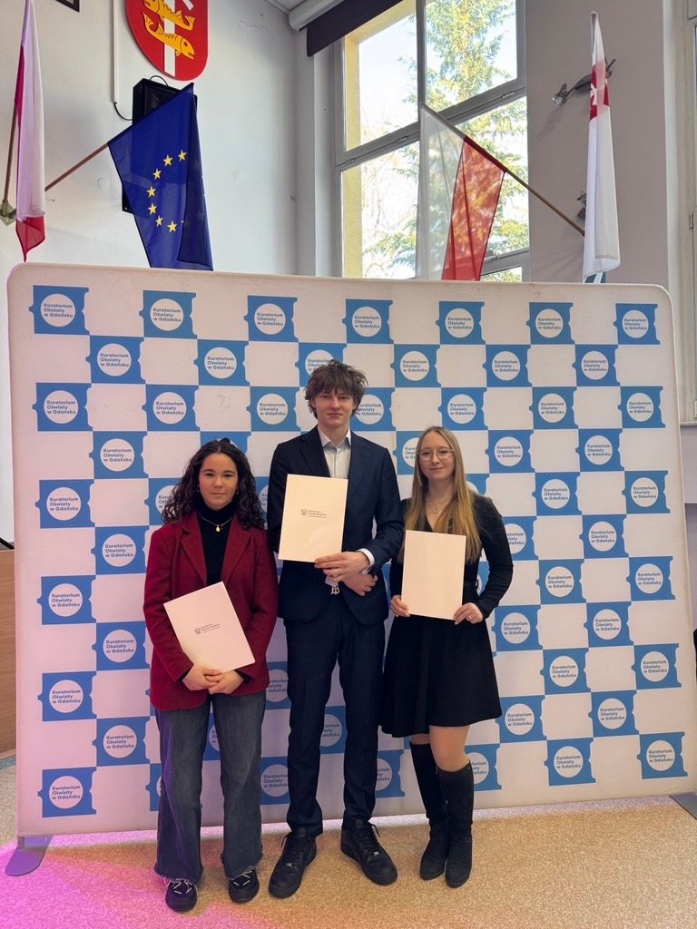 Lila Sochaj z klasy 4IBa, Zofia Stelter z klasy 4IBa oraz Bartosz Pietrzyk z klasy 1IBa otrzymali w dniu 16.02.2026 r. dyplomy potwierdzające uzyskanie stypendium MEN za rok szkolny 2024/2025.